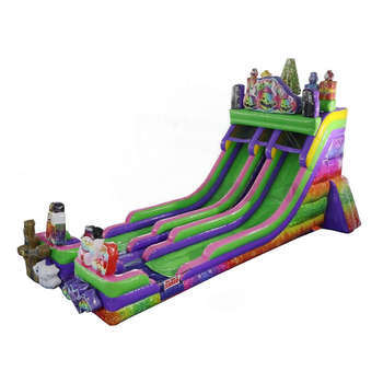 Doppelspurige Süßigkeiten-Themen-Aufblasrutsche, Aufblasbare Rosa Süßigkeiten-Rutsche, Süßigkeiten-Kombi-Hüpfburgen Aufblasbare Sprungburg